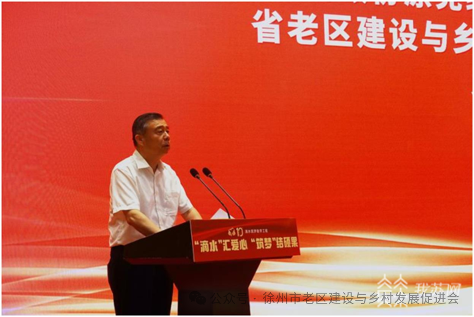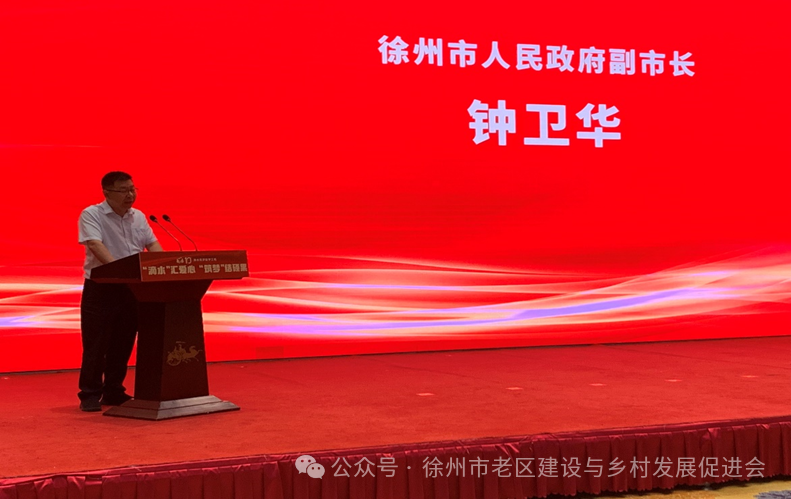 徐州市政府副市长钟卫华、市老区建设与乡村发展促进会理事长李荣启参加活动。钟副市长为活动会议作了热情洋溢的致辞,他说“滴水•筑梦”助学工程十周年回顾总结活动在这里隆重举行,充分体现了省老区建设与乡村发展“三会”对徐州工作的重视和关心,他代表市委、市政府,向参加本次活动的各位领导、各位嘉宾表示热烈的欢迎!向与会人员简要介绍了徐州情况,并祝活动圆满成功。